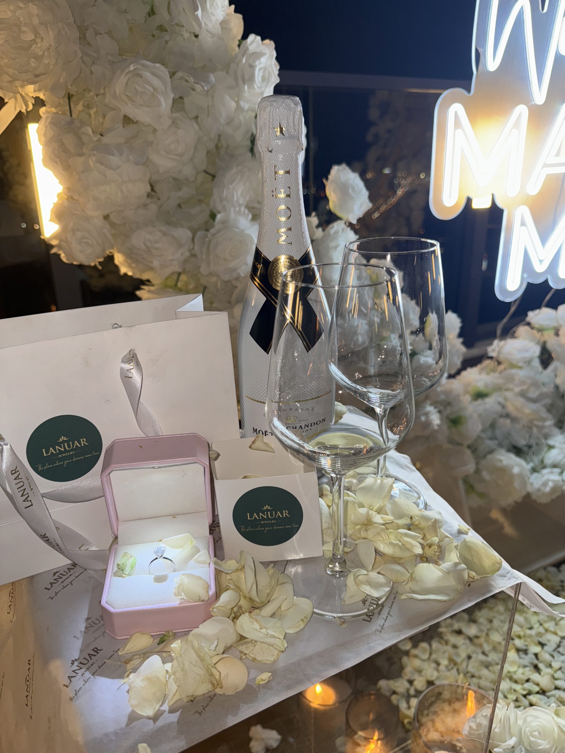 כל זאת בליווי שמפניה מבעבעת וכוסות מעוצבות עבור הזוג המאושר, ליצירת אווירה בלתי נשכחת.