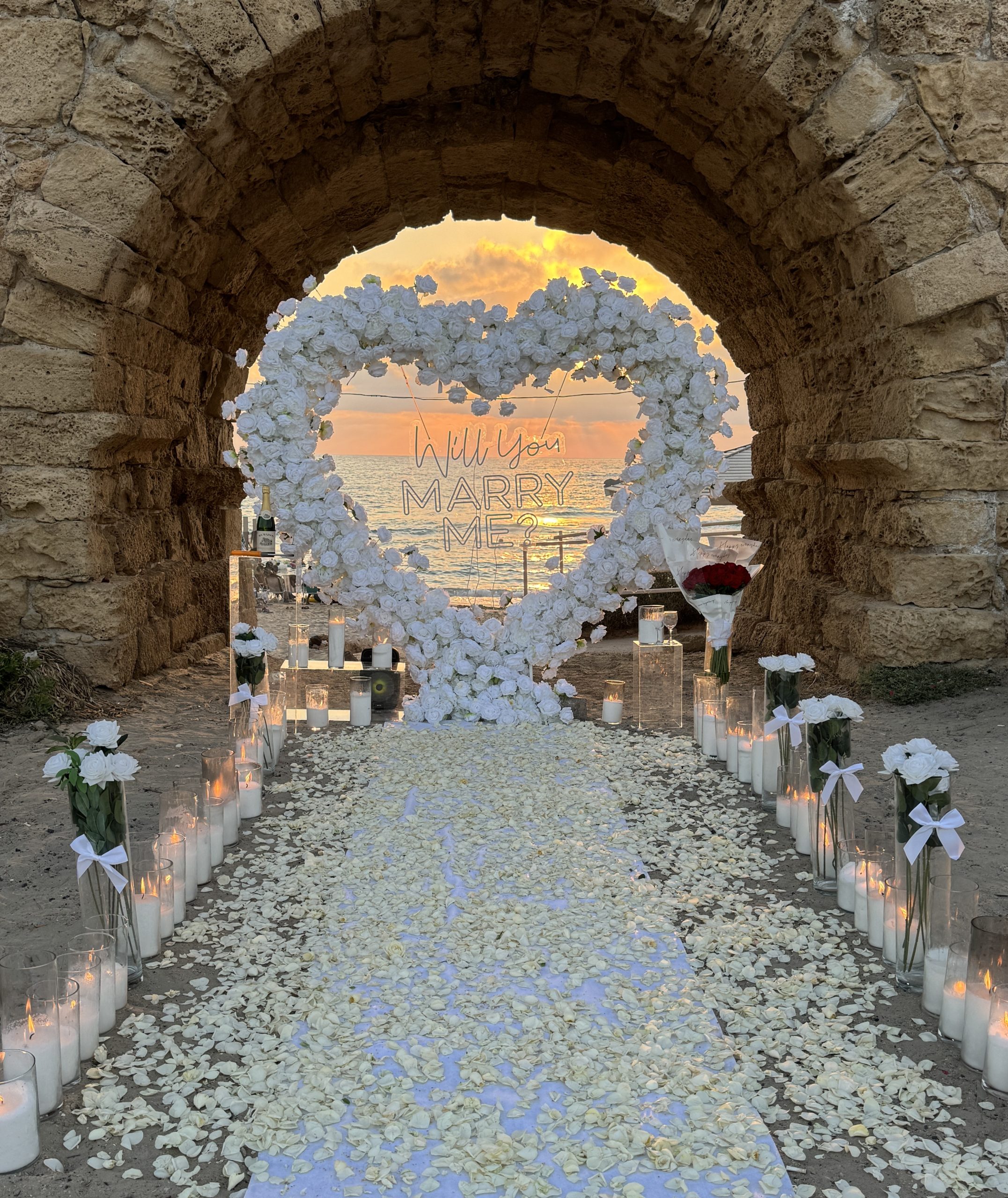 אצלנו, כל פרט נבחר בקפידה, וכל רגע מעוצב מתוך אהבה , רומנטיקה, ויוקרה בלתי מתפשרת. אנו מתמחים בהפקת הצעות נישואין בלתי נשכחות – כאלה שירגשו, יפתיעו ויחרטו בלבכם ובזיכרונכם לנצח.