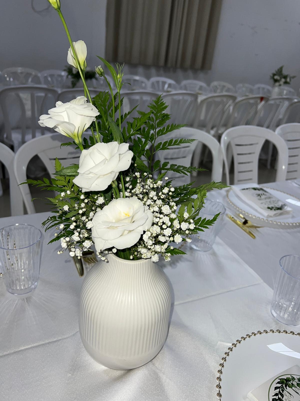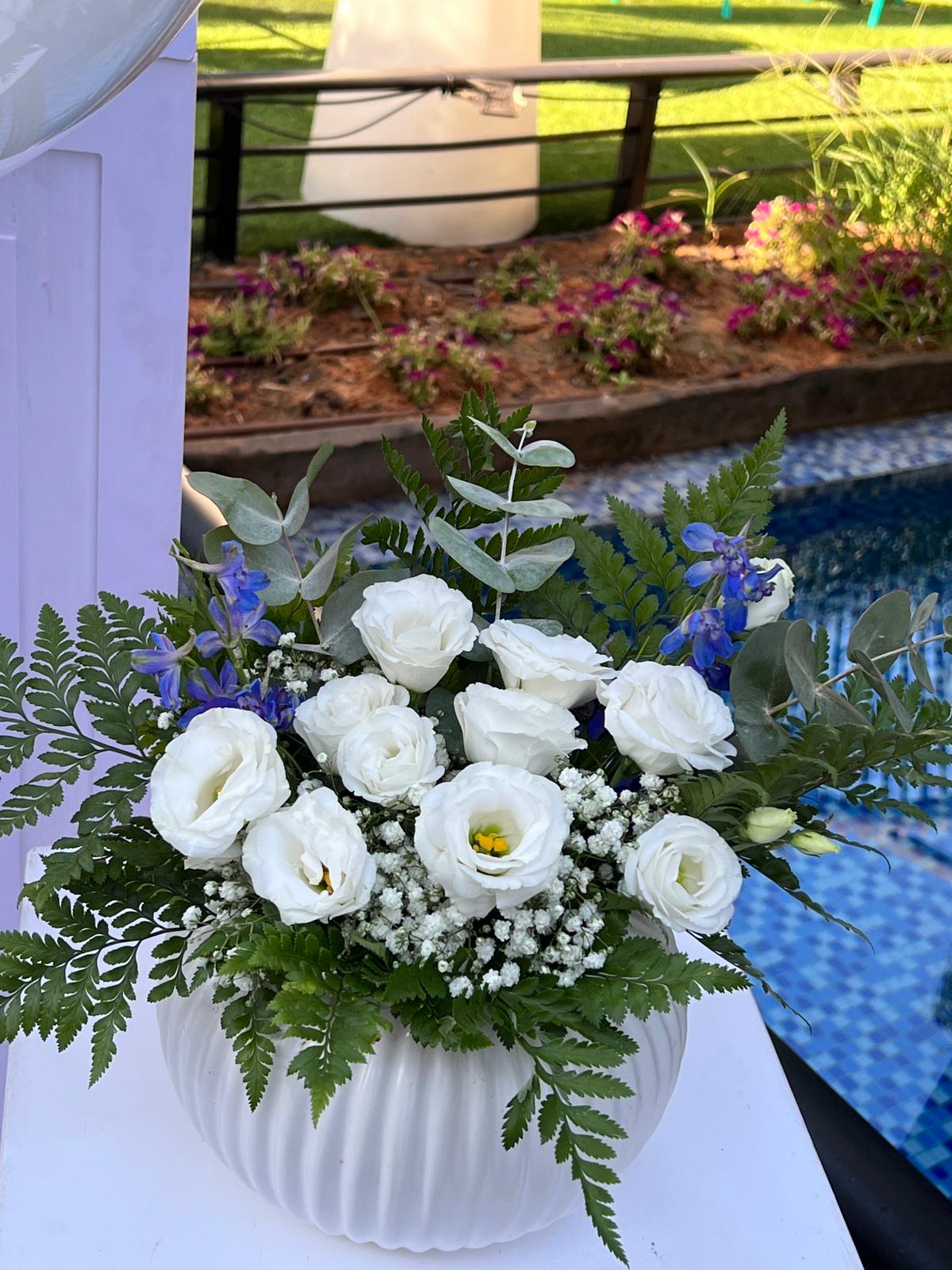 מרכזי שולחן עם שזירת פרחים חיים